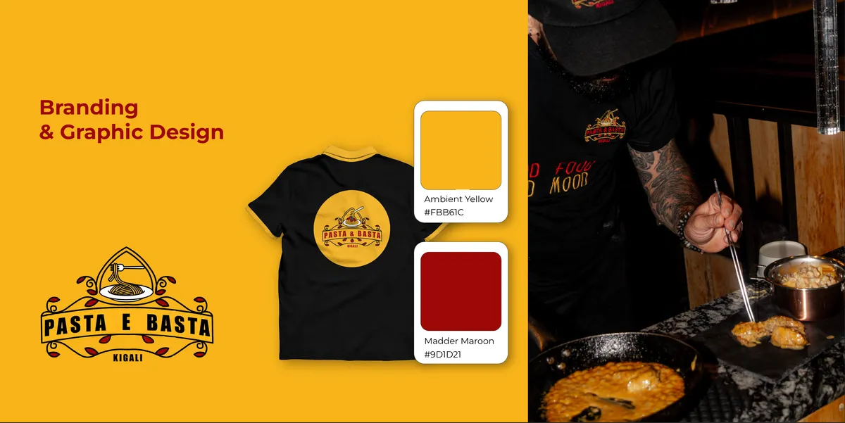 Pasta e Basta, an Italian restaurant in Kigali, needed a complete brand identity that captures the warmth and authenticity of Italian dining while standing out in Kigali's growing restaurant scene. The brand needed to work across physical spaces (signage, menus, merchandise) and digital channels (social media, delivery platforms).
